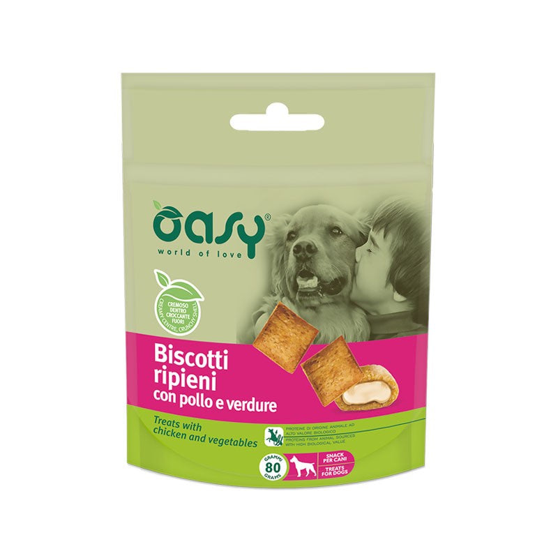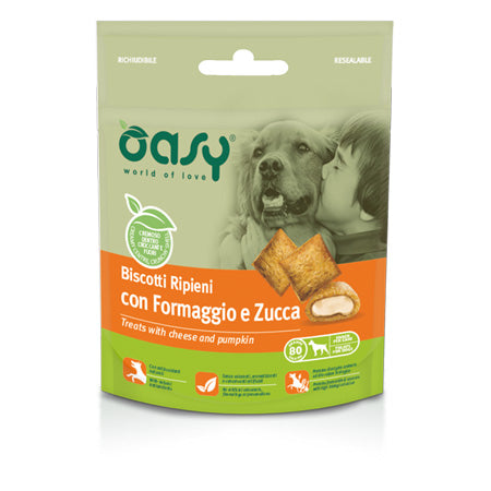Oasy Snack Per Cani BISCOTTI ripieni con FORMAGGIO e ZUCCA 80 gr€2,12€2,30