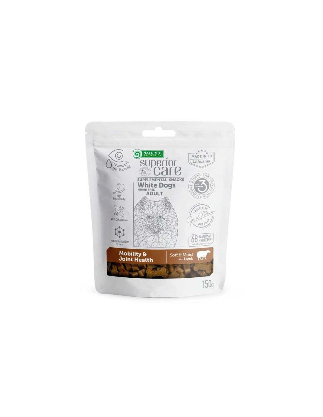 NATURE'S PROTECTION SUPERIOR CARE SNACK WHTE DOG GRAIN FREE MOBILITY & JOINT HEALTH WITH LAMB- ADULT DOG ALL BREED, 150 GR.€5,90