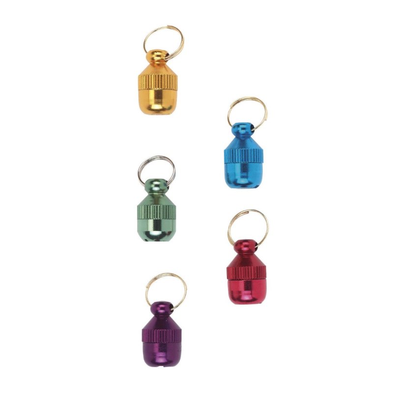 Tubetto identificativo per cani e gatti , con nome dell’animale e indirizzo di casa del proprietario .