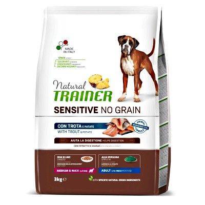 NATURAL TRAINER SENSITIVE NO GRAIN ADULTO MEDIUM/MAXI TROTA 3KG€18,99