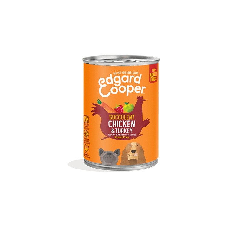Umido edgard cooper ADULT Pollo e Tacchino con mela fragola e carota 400 gr€3,07